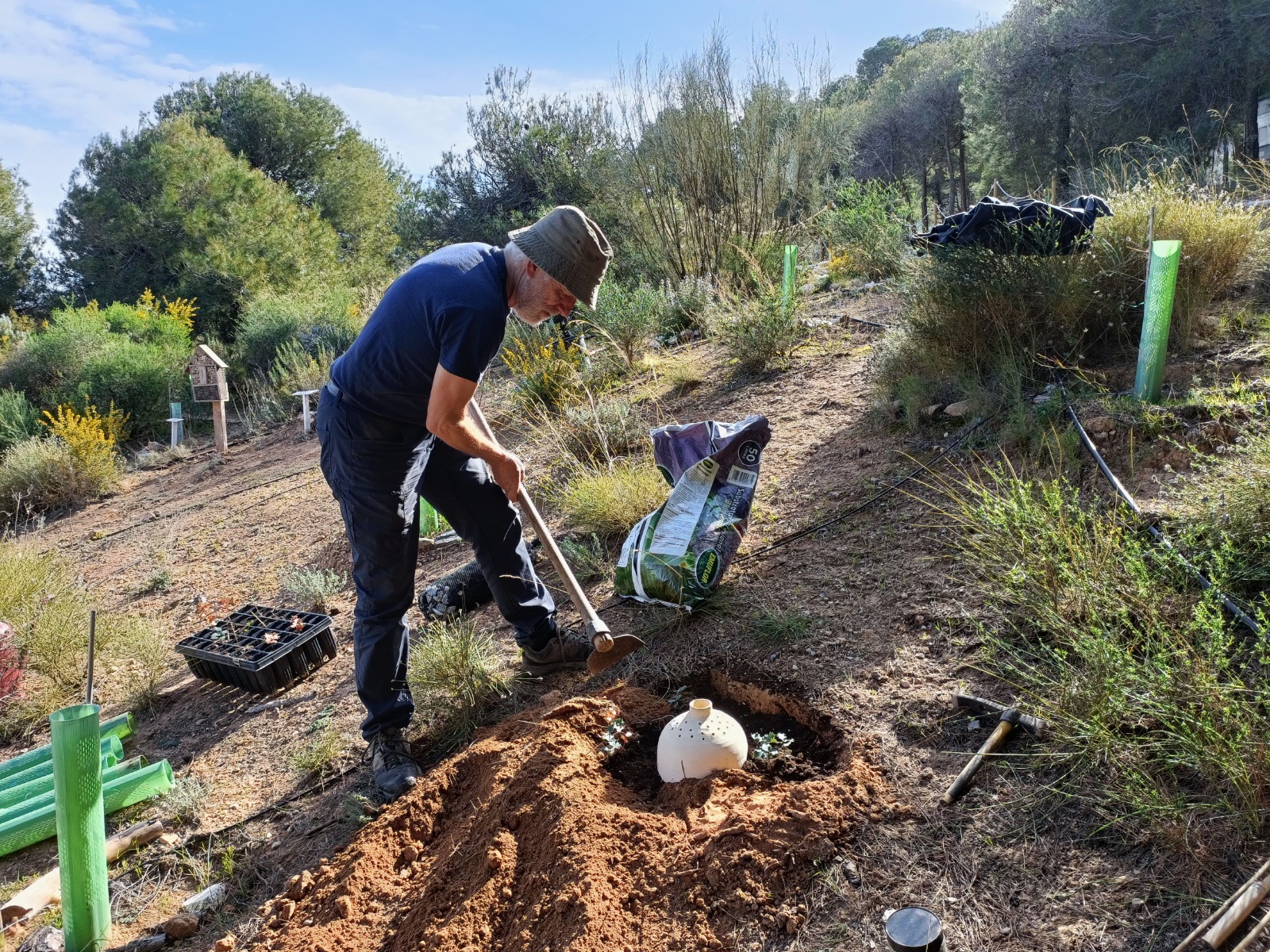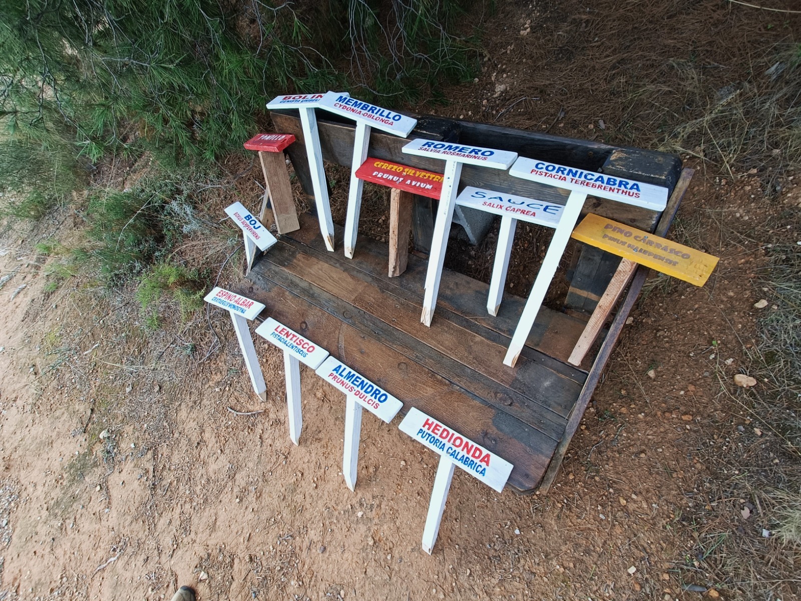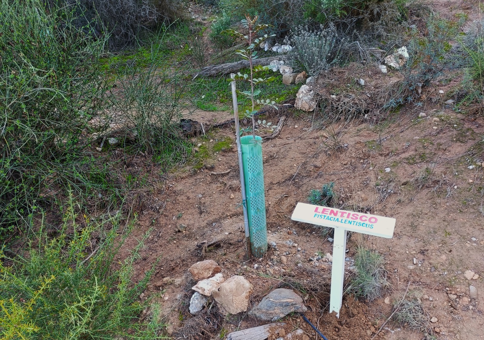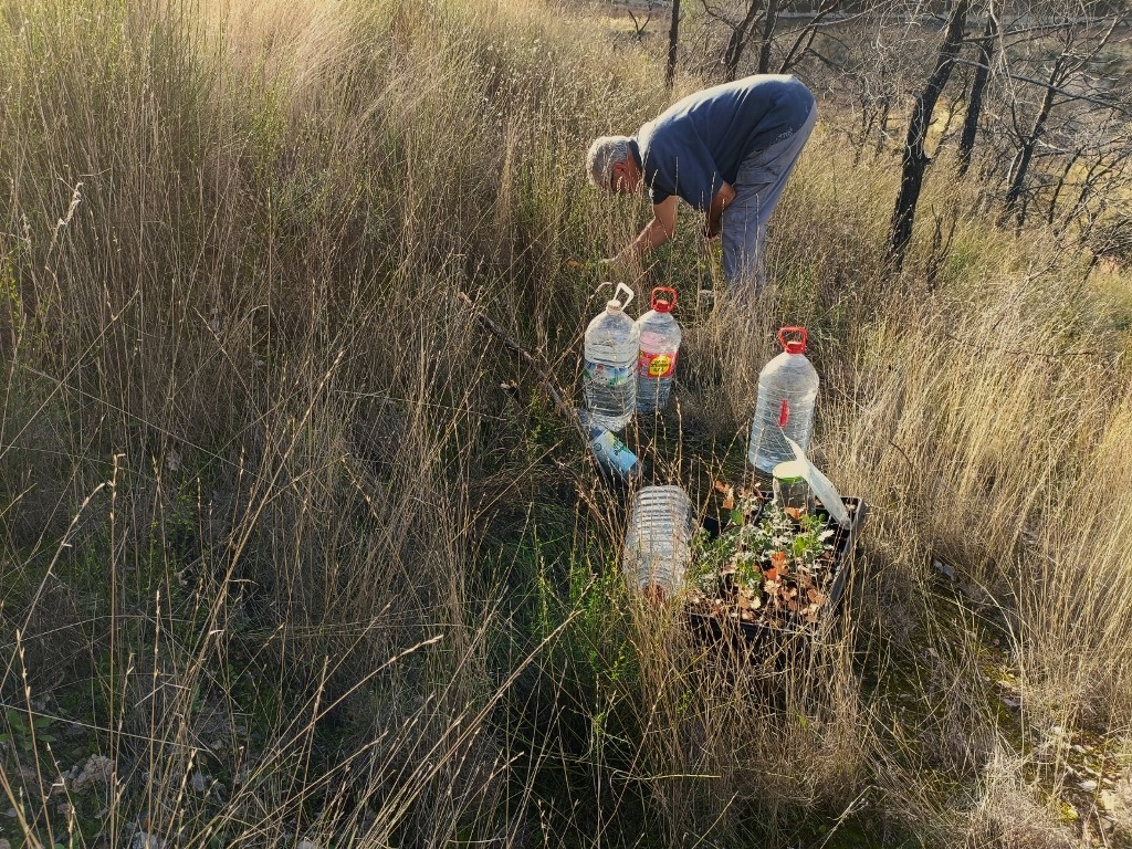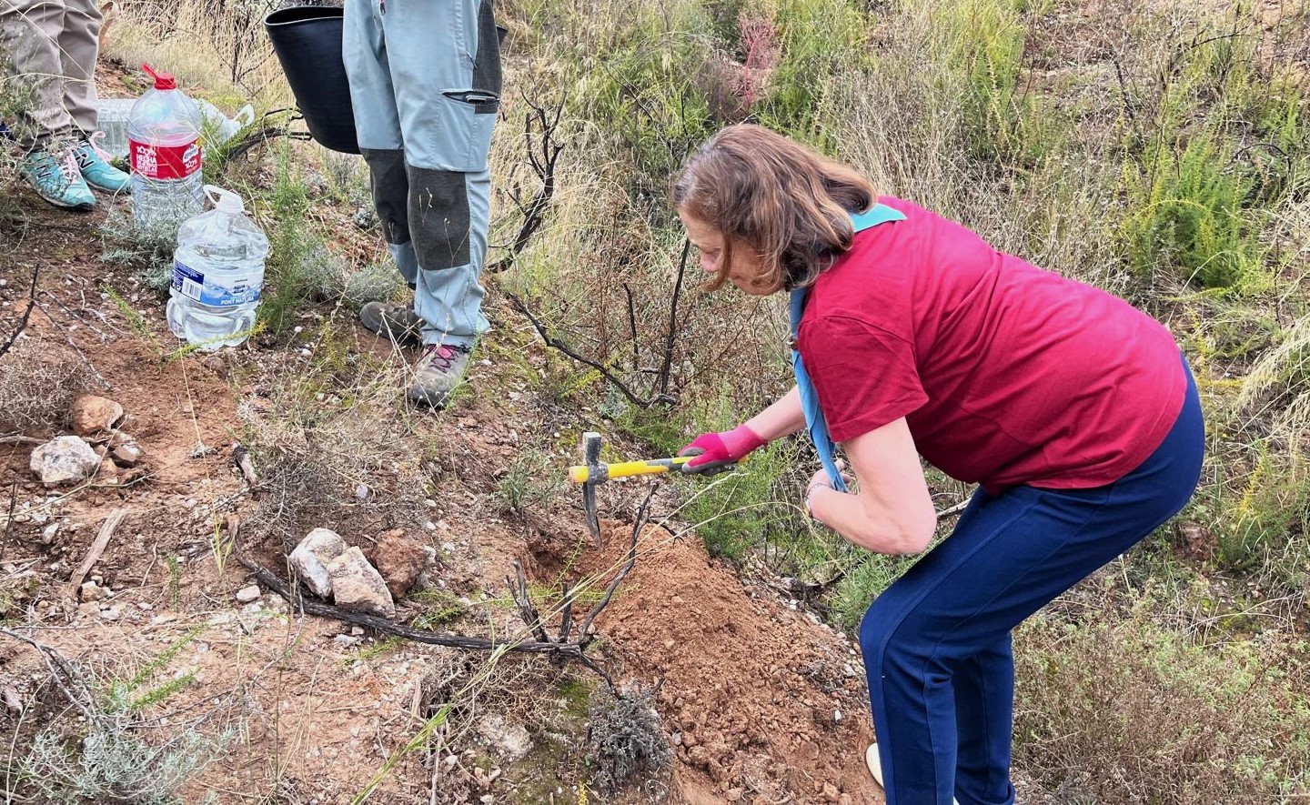 Tras varios días de reforestación en las inmediaciones de Vallescout, ahora tocaba seguir con las mejoras en nuestro jardín botánico del interior del campamento, en el que seguimos con la identificación de las plantas que van creciendo en su interior: un membrillo, álamo blanco, encinas, gayombas, retama, bolina, cornicabra, espinos, hediondas, lentiscos, tomillo, cerezos, rosales silvestres, aloes…, y un sinfín de plantas silvestres y aromáticas que embellecen este espacio natural.