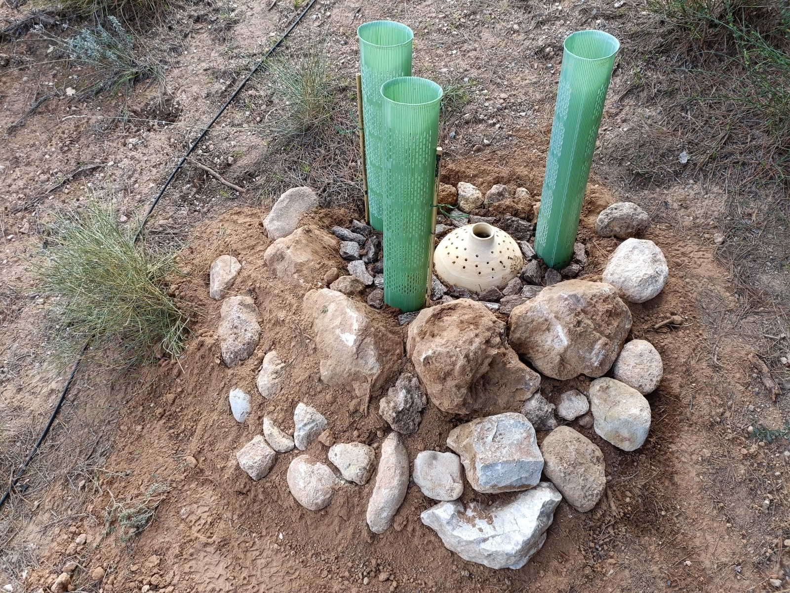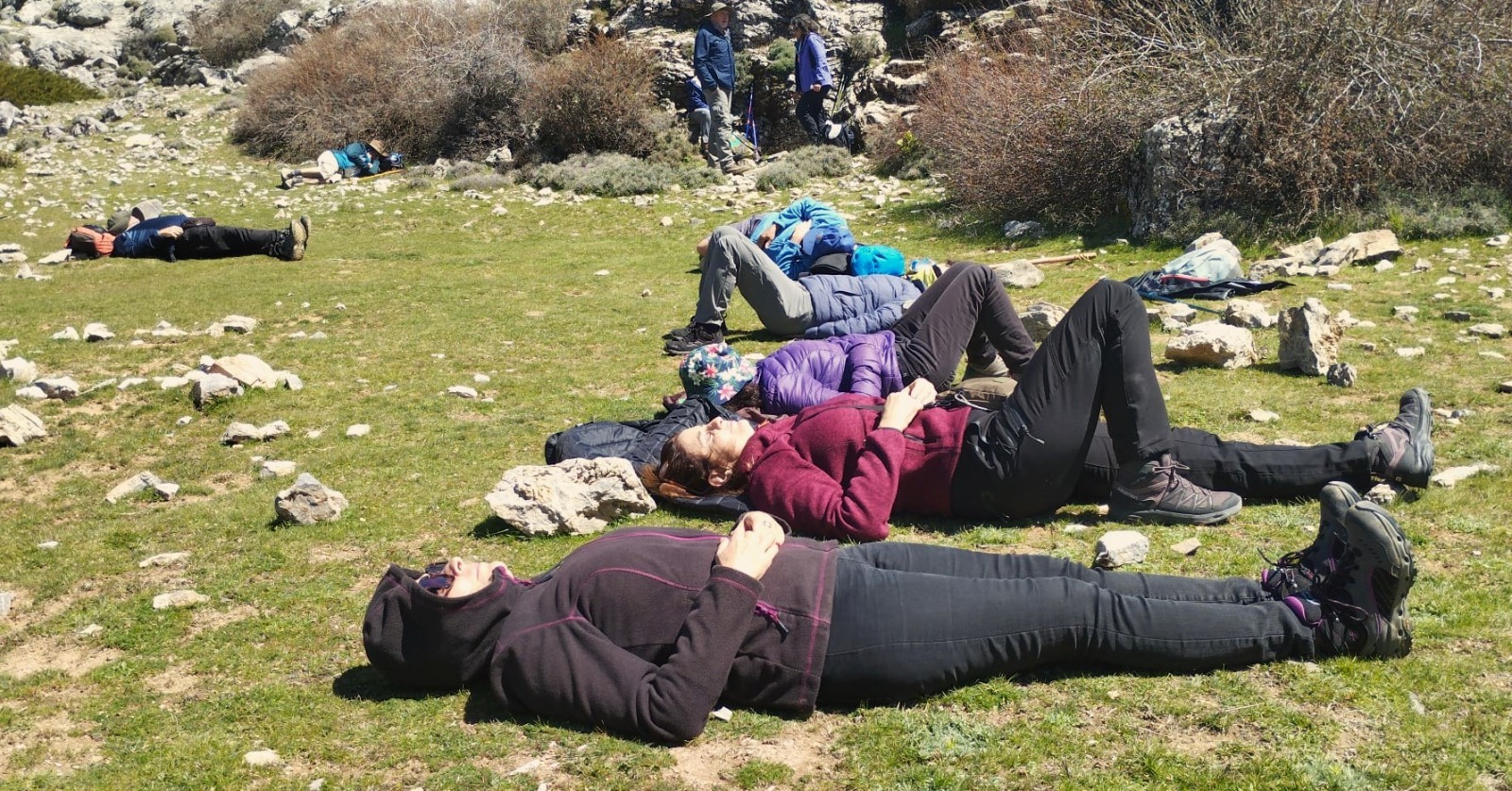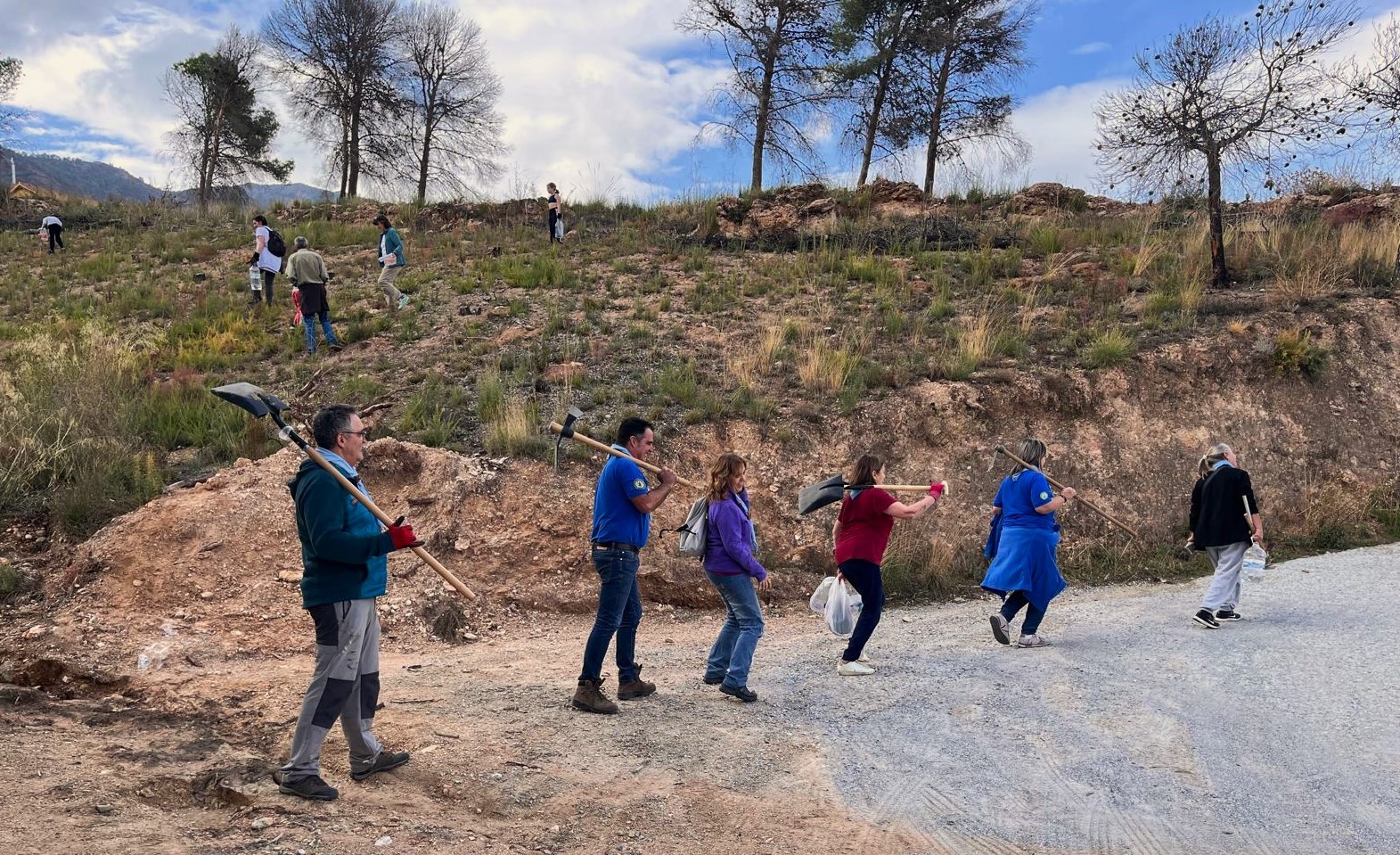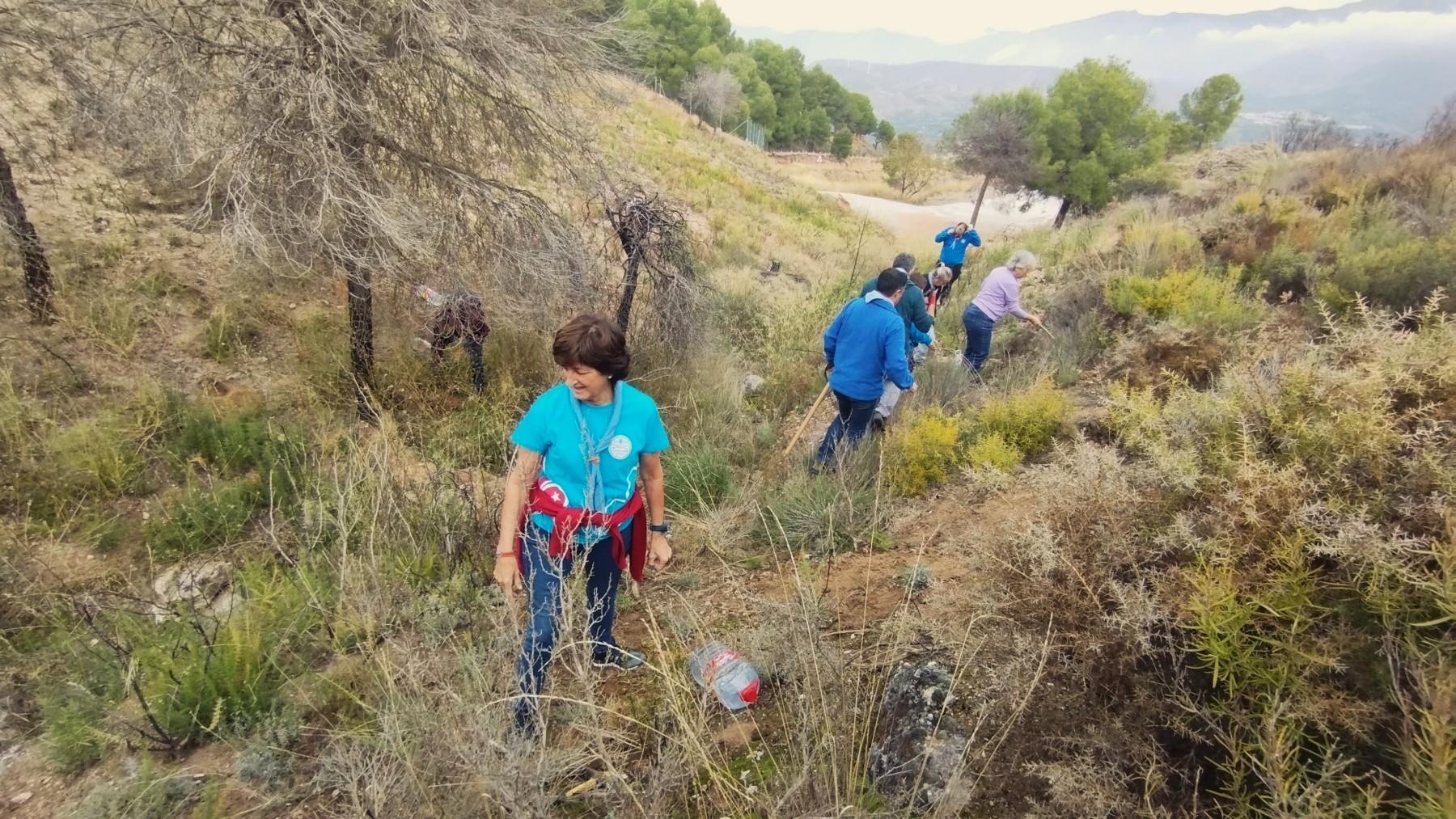 Tras varios días de reforestación en las inmediaciones de Vallescout, ahora tocaba seguir con las mejoras en nuestro jardín botánico del interior del campamento, en el que seguimos con la identificación de las plantas que van creciendo en su interior: un membrillo, álamo blanco, encinas, gayombas, retama, bolina, cornicabra, espinos, hediondas, lentiscos, tomillo, cerezos, rosales silvestres, aloes…, y un sinfín de plantas silvestres y aromáticas que embellecen este espacio natural.