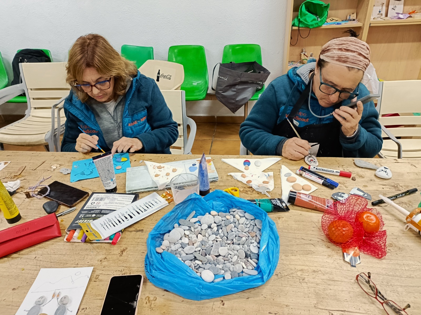 En la Sala de Exploradores, dirigidos por Rosi, se llevaron a cabo varios talleres: creación de jabón natural con aceites usados, bálsamo labial, pirograbados, pinturas y cuadros creativos con piedras, etc. Siempre nos impresiona con sus iniciativas tan creativas y divertidas y los resultados siempre de gran belleza.